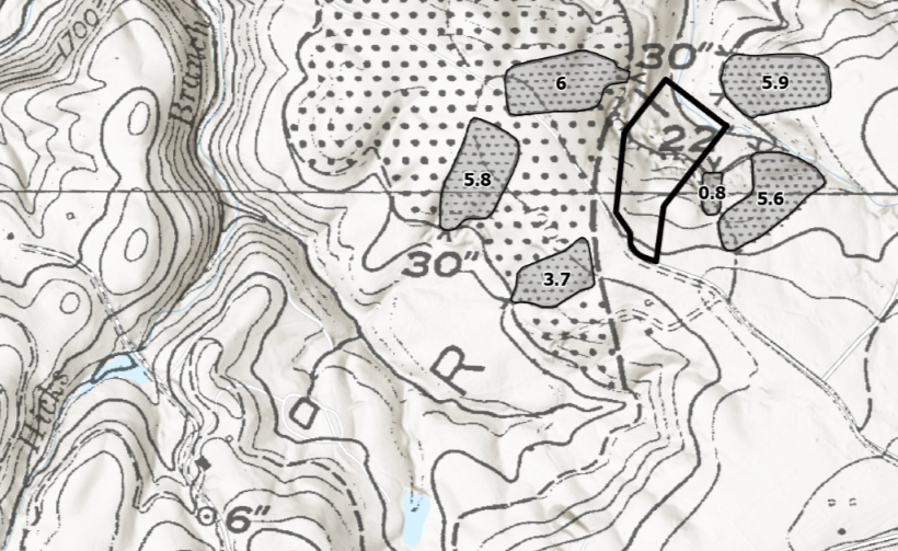 Multiple historical maps clearly show the Hicks Branch Mine and a nearby, unnamed mine.